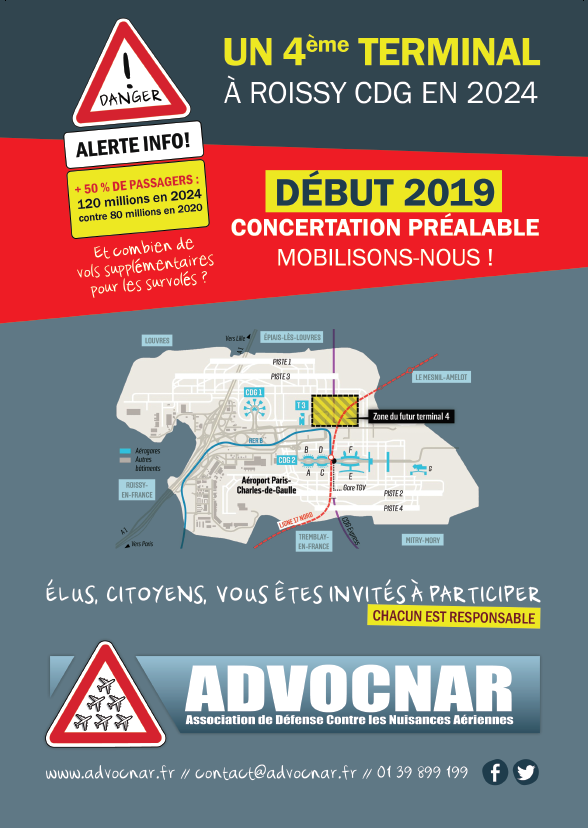 Avec le projet de Terminal 4, dont les travaux vont débuter à l’été 2020, ADP a la folie des grandeurs … au mépris de la santé et de la qualité de vie des habitants survolés !