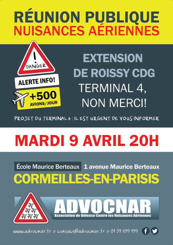 - CORMEILLES mardi 9 avril 20h – Ecole Maurice Berteaux (1 avenue Maurice Berteaux)
