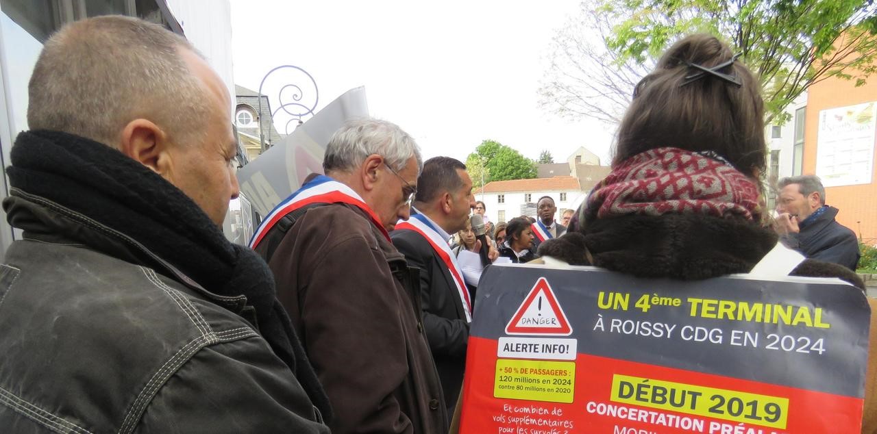 Une manifestation était organisée ce lundi soir devant l’hôtel de ville pour protester contre la construction d’un nouveau terminal à l’aéroport à Roissy.