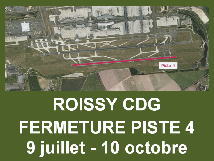 Fermeture piste 4 Roissy CDG pour travaux du 9 juillet au 10 octobre 2018